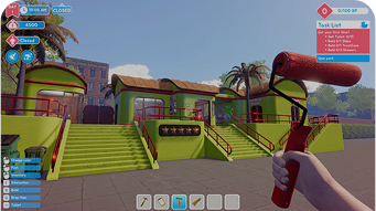 Experience the chaos up close! Whether you’re unclogging a pool, selling hotdogs or throwing a beach ball, everything happens from your own two eyes. First-person gameplay makes your role as manager, builder, and occasional lifeguard hilariously personal